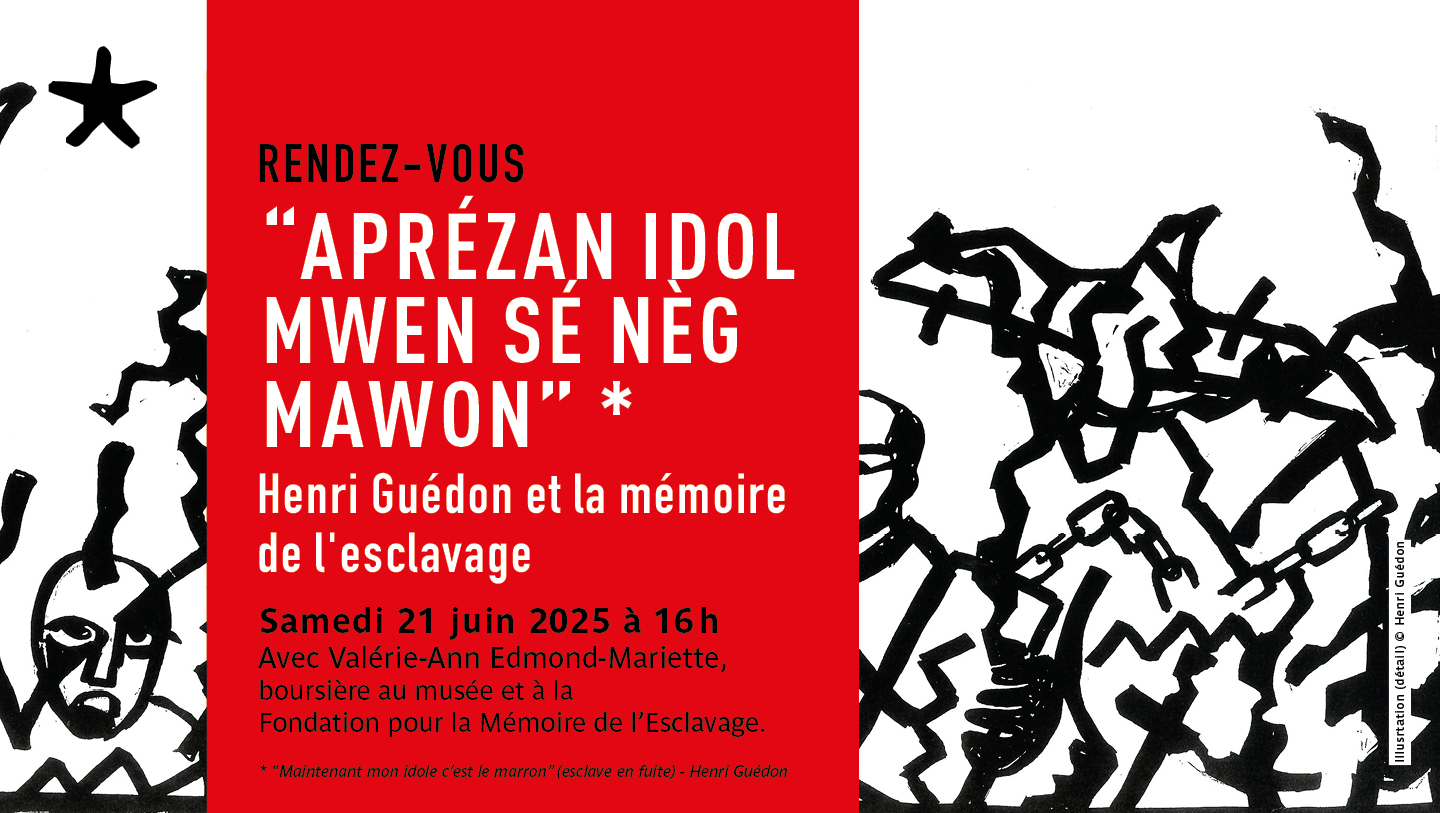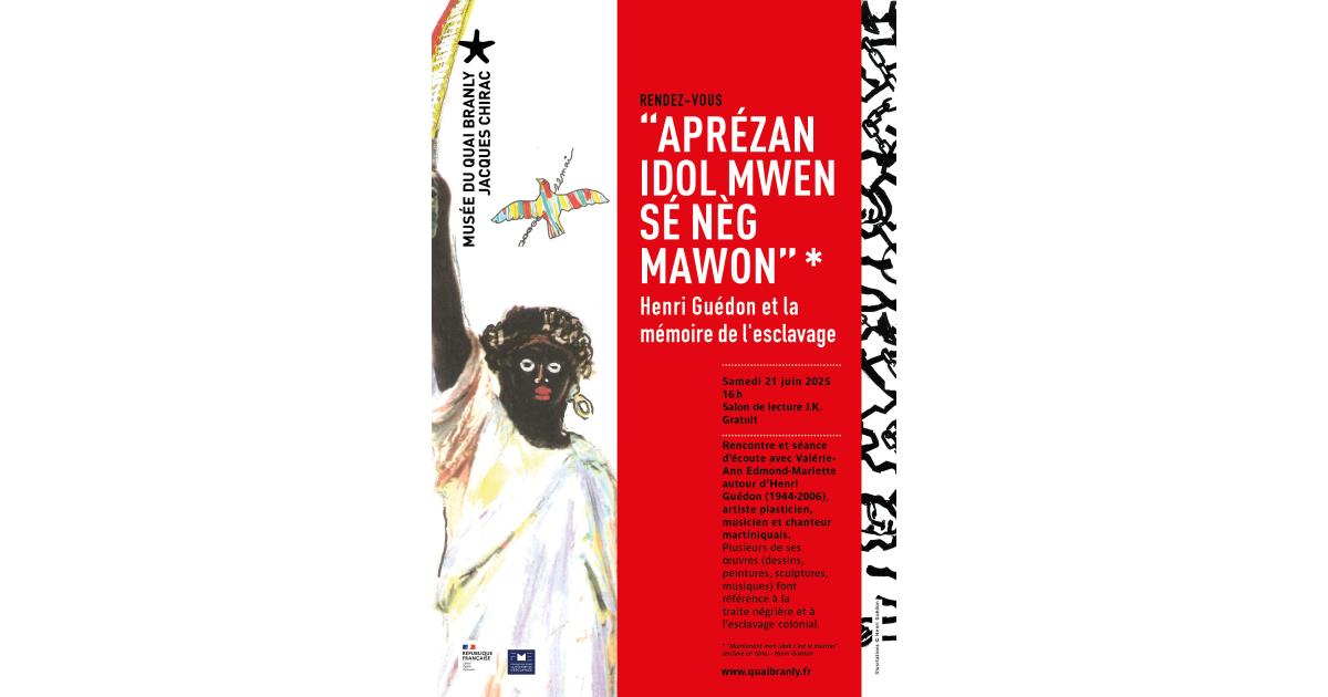 En partenariat avec le musée du quai Branly, la FME propose un événement intitulé “Aprézan idol mwen sé nèg mawon”, rencontre et séance d’écoute avec Valérie-Ann Edmond-Mariette, lauréate de la bourse de thèse FME - Musée du quai Branly autour d’Henri Guédon (1944-2006) artiste plasticien, musicien et chanteur martiniquais.