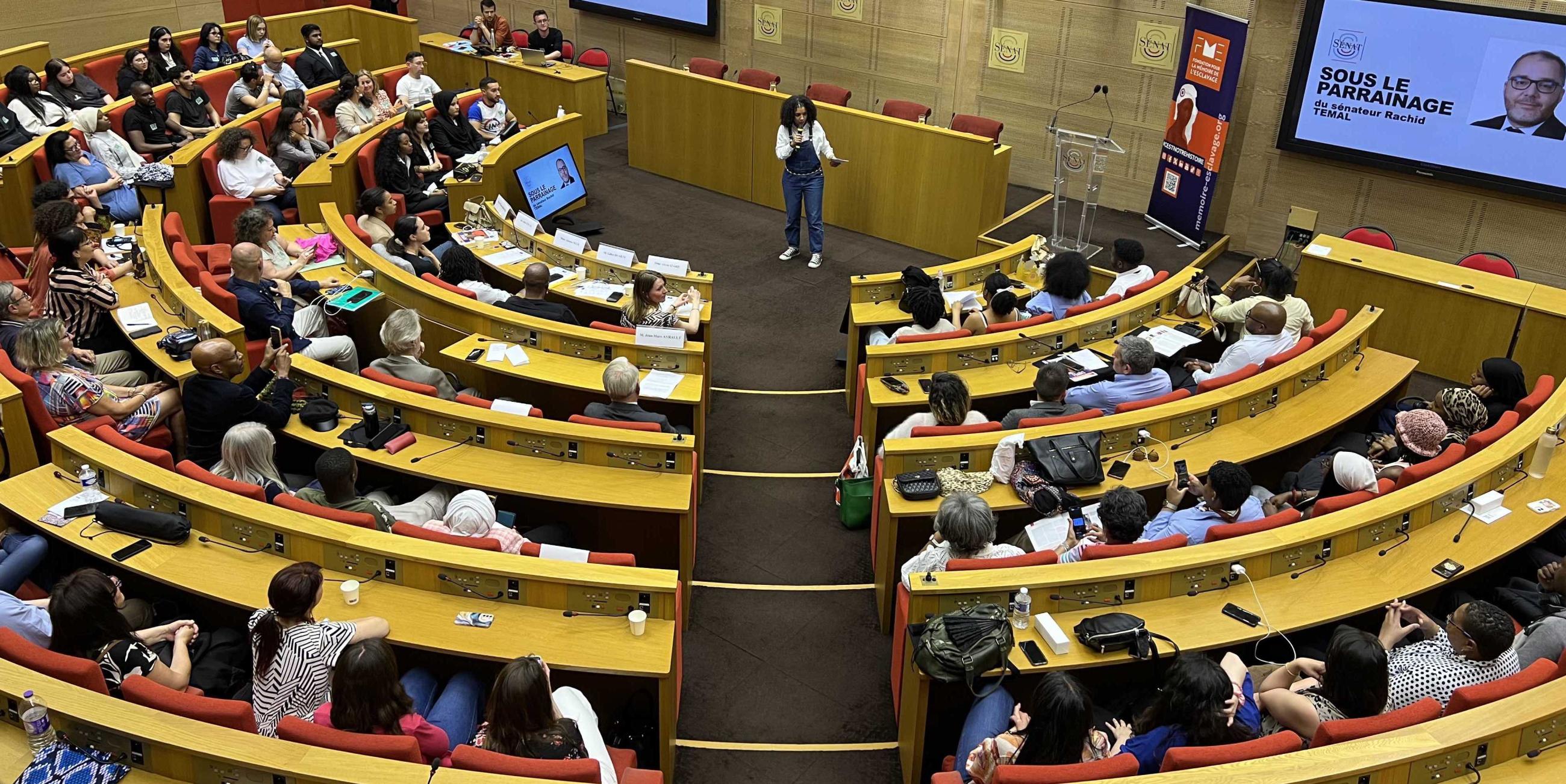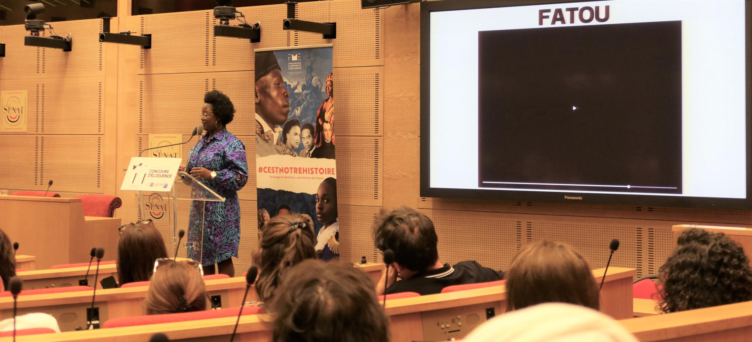 Le jeudi 27 juin 2024 au Palais du Luxembourg, avait lieu la finale du concours d’éloquence organisé par la FME. Pour cette deuxième édition, la question posée aux huit candidat.e.s était en rapport avec la thématique 2024 du Temps des Mémoires : « Survivre à l'esclavage, est-ce résister ? ».