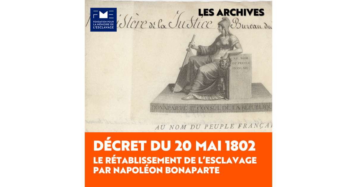 Le 20 mai 1802, Napoléon Bonaparte rétablit l’esclavage dans le droit français.