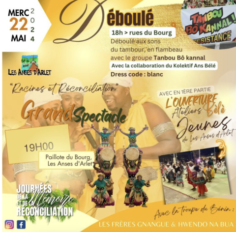 À l'occasion de la Journée des Mémoires et de la la Réconciliation, la ville des Anses d'Arlet organise une défilé-spectale à partir de 19H.