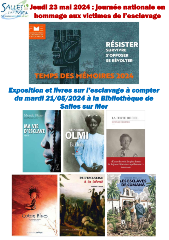 Exposition et livres sur l’esclavage à compter du mardi 21/05/2024 à la Bibliothèque de Salles sur Mer