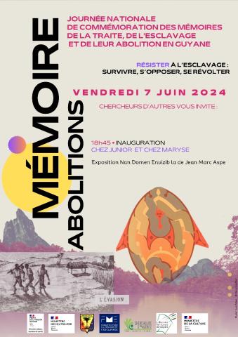 À l'occasion de la commémoration de l'abolition de l'esclavage en Guyane, l'association chercheurs d'autres présente du 7 juin au 5 juillet 2024 l'exposition Exposition Nan Domen Enuizib la de Jean Marc Aspe au restaurant chez Junior et Maryse.