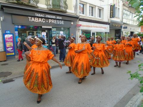 10h, devant la gare, précédés de la police municipale, les groupes déambulent dans les rues du Centre-ville.