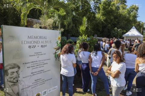 La cérémonie eut lieu devant le mémorial Edmond Albius, et l'exposition est installée au jardin de la Mémoire.