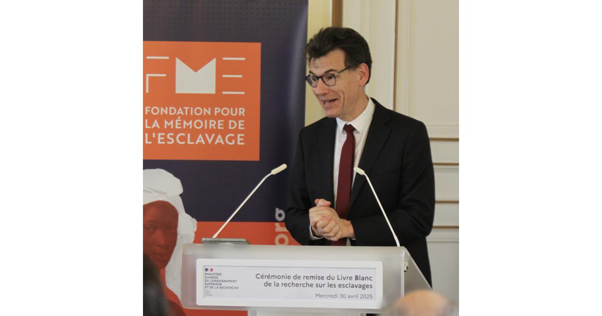 "Je tiens à saluer le travail de la Fondation pour la mémoire de l’esclavage qui permet, à travers ce Livre Blanc, de dresser un état des lieux de la recherche sur les esclavages. En France, la recherche sur ces sujets est particulièrement dynamique et ce Livre Blanc nous offre des pistes pour lui permettre de continuer à grandir pour nous apporter un éclairage scientifique sur des questions importantes et sensibles, en France et dans le monde."