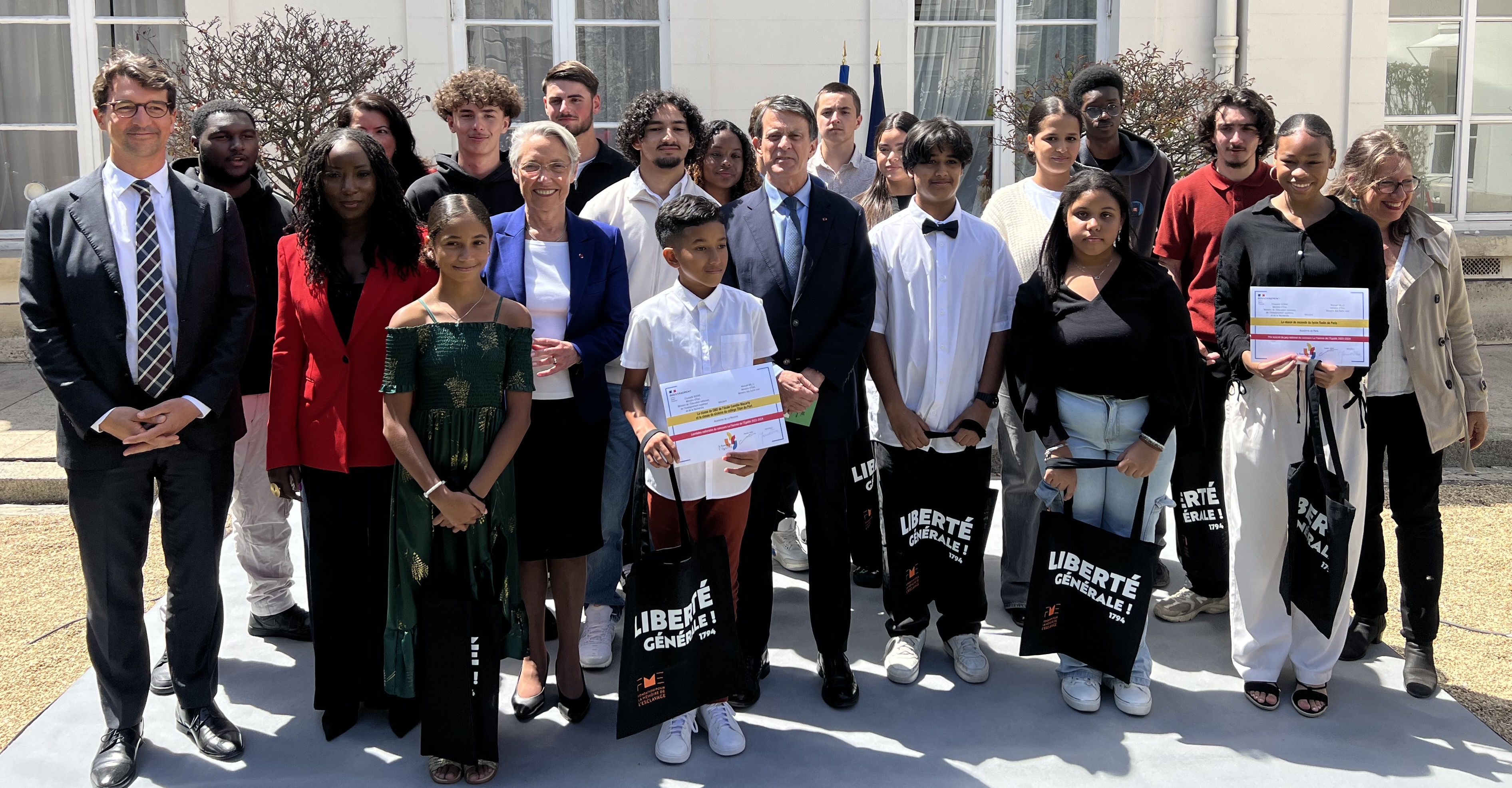 La cérémonie de remise des prix aux lauréats nationaux de la session 2023-2024 du concours de « La Flamme de l’égalité » s'est tenue au Ministère des Outre-mer, le 23 mai, en présence du ministre des Outre-mer Manuel Valls et de la ministre de l'Education nationale et de la Jeunesse Elisabeth Borne.